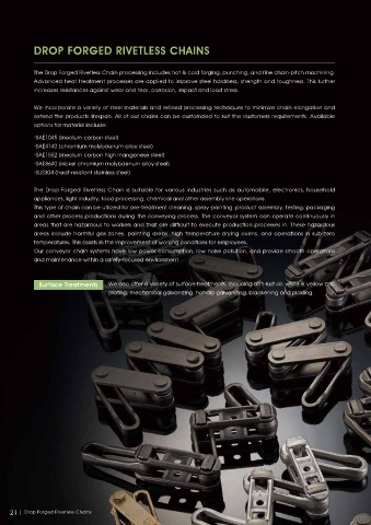 The Drop Forged Rivetless Chain processing includes hot & cold forging, punching, and f ine chain-pitch machining.