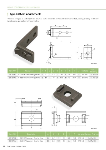 This series of forged or casted parts are mounted on the center link of the rivetless conveyor chain, adding a variety of different