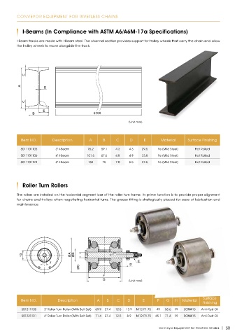 I-Beam tracks are made with I-Beam steel. The channel section provides support for trolley wheels that carry the chain and allow