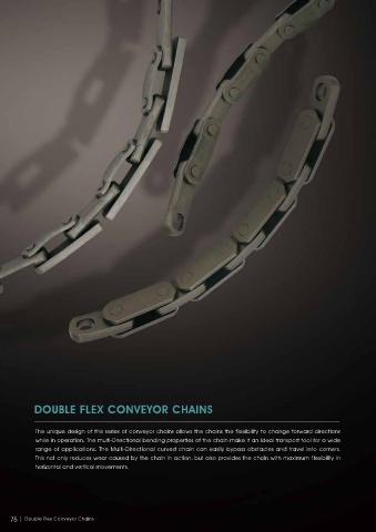 The unique design of this series of conveyor chains allows the chains the f lexibility to change forward directions